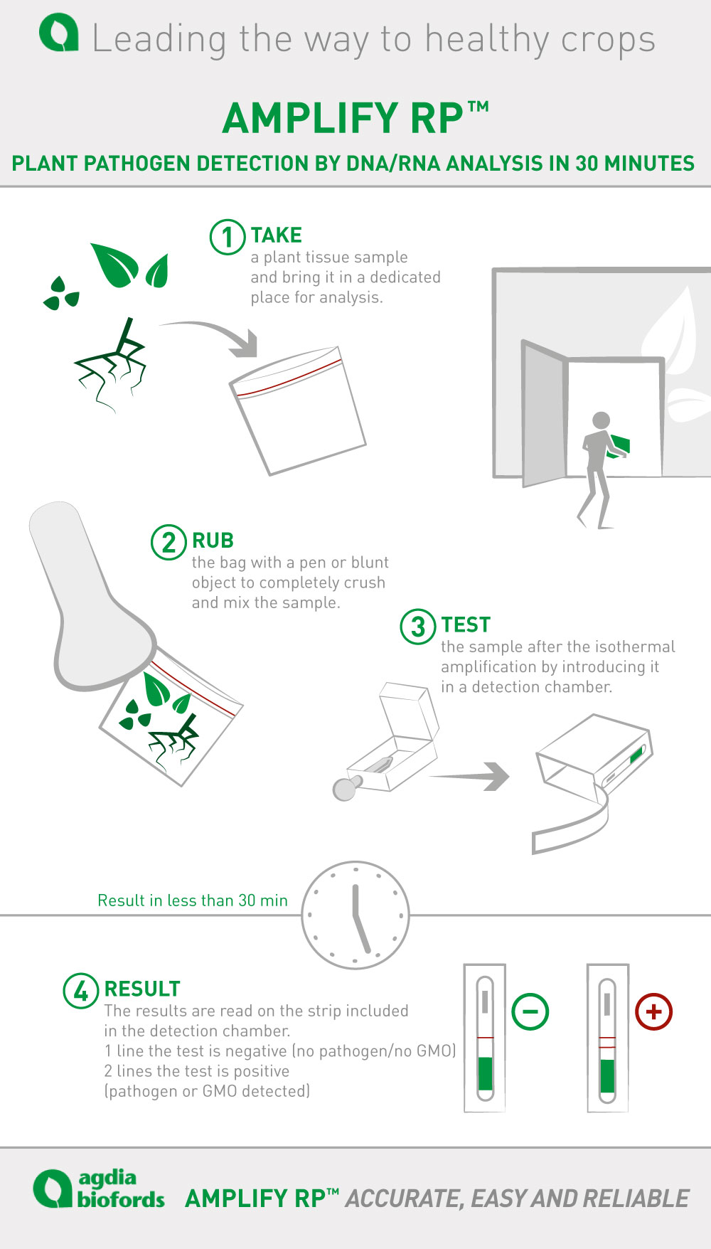 Agdia, Inc is the leading developer and manufacturer of test kits for detection of plant pathogens and transgenic traits (GMO’s). Agdia products and services are used all over the world by an extensive range of clientele who are responsible for assessing crop quality. Agdia’s mission is to assist all facets of crop production grow high quality, healthy, and profitable crops through routine testing and management of plant disease and transgenic traits.